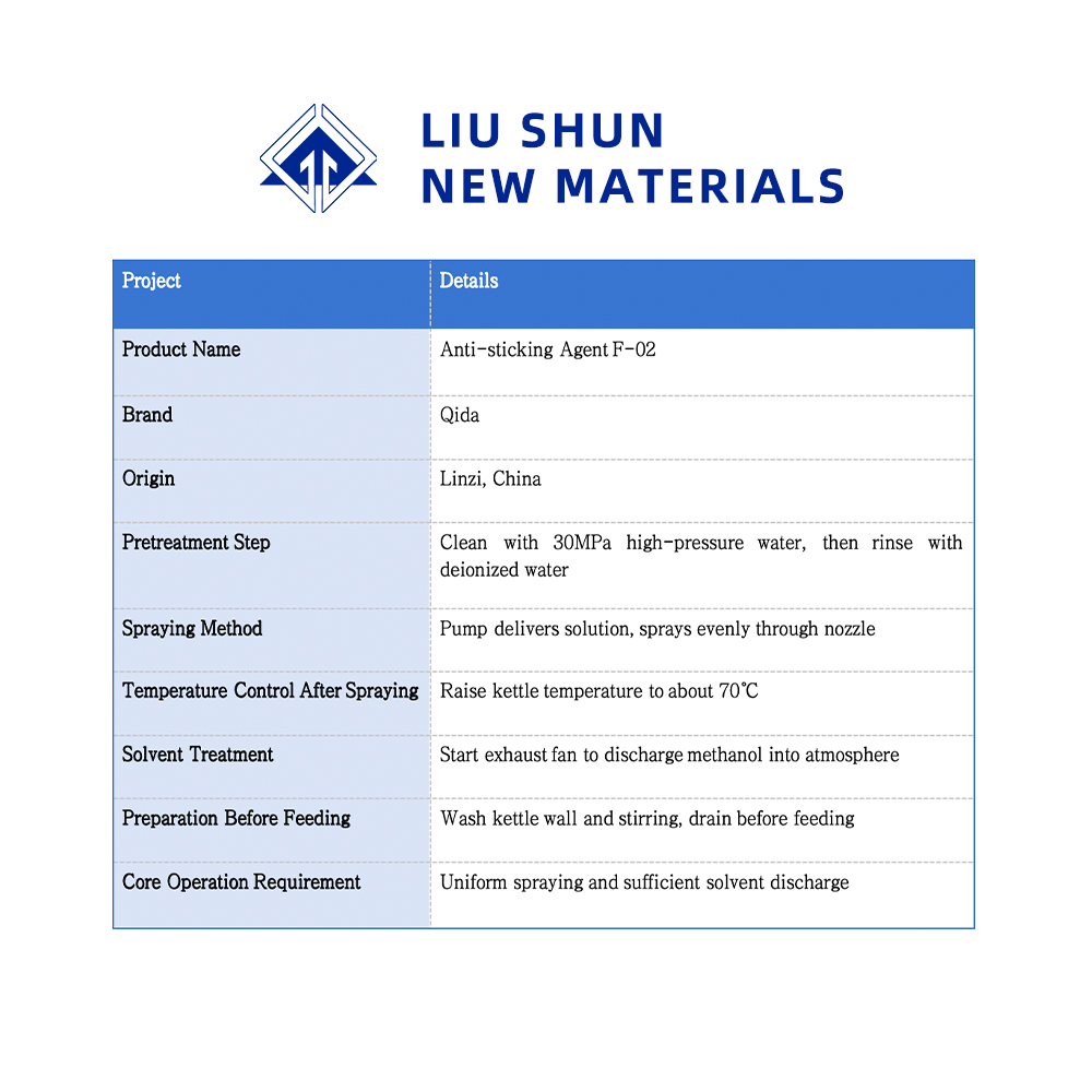 3. Типичная дозировка: для реактора объемом 48 м3 рекомендуемый объем распыления составляет 110–150 г на одно применение. Растворите 330 г золотого антипригарного средства в 30 л метанола, тщательно перемешайте, чтобы обеспечить полное растворение , и используйте тремя отдельными порциями примерно по 10L каждой. Перемешивайте смесь перед каждым применением.