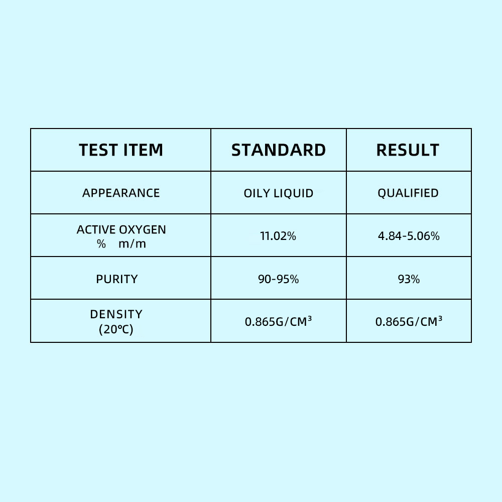 3. Теоретическое содержание активного кислорода в чистом продукте: 11,02%; Фактическое содержание активного кислорода: 4,84-5,06 %.